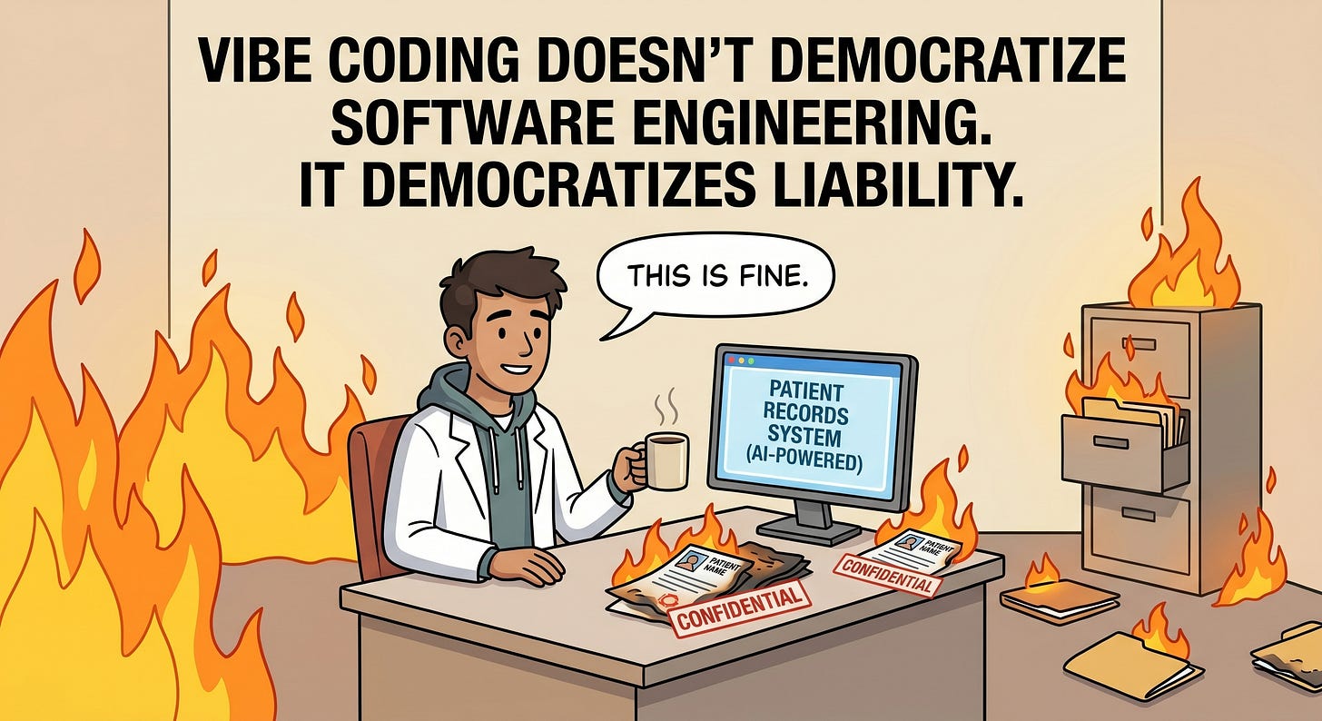 Vibe Coding doesn't democratize software engineering - it democratizes liability